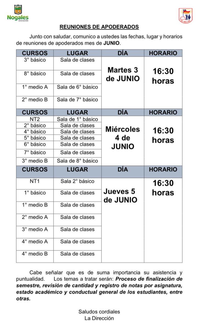 Informamos que ya están disponibles las fechas de las Reuniones de Apoderados correspondientes a este periodo. ![]()