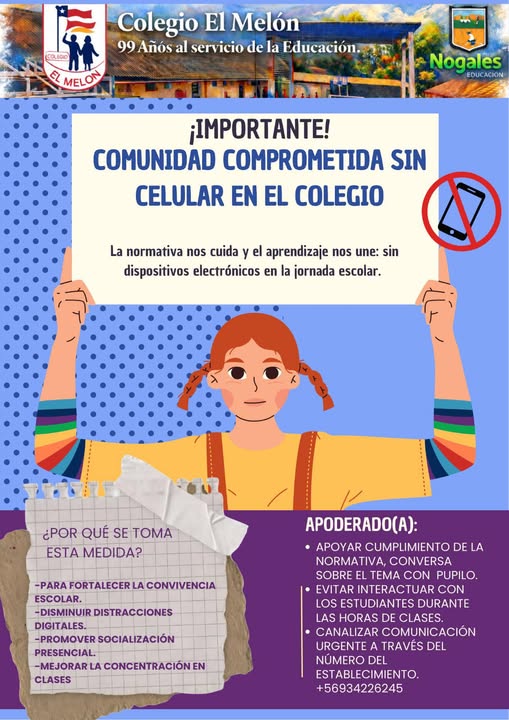 Recordamos que durante la jornada escolar no está permitido el uso de dispositivos electrónicos.