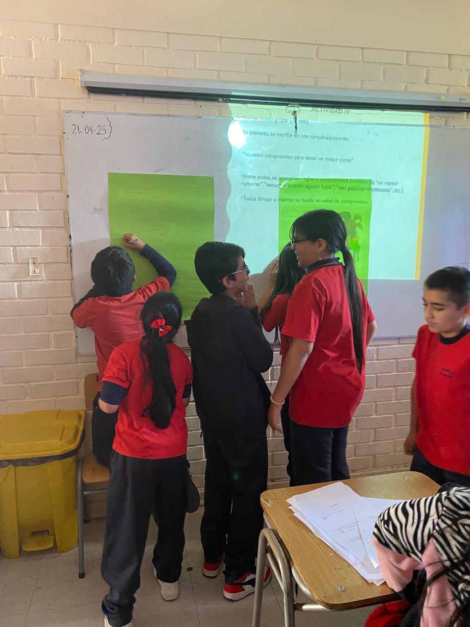 El día lunes 21 de abril El equipo de Convivencia Escolar realizó una intervención en el curso 5* básico con el taller: “Construyendo un mejor curso a través de la empatía y el respeto” , correspondiente al Hito Mensual que durante este mes aborda la sana convivencia y el buen ambiente dentro y fuera del aula. En esta intervención los estudiantes realizaron diferentes actividades individuales y grupales para el desarrollo de sus valores y habilidades sociales.