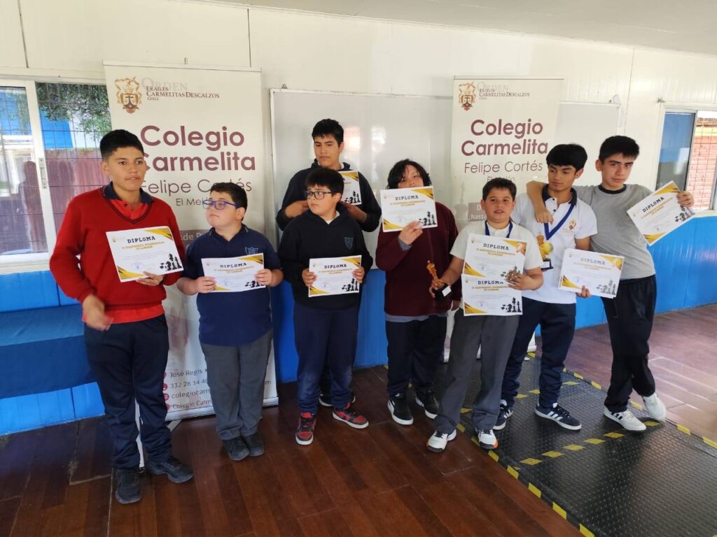 El día miércoles 5 de noviembre algunos estudiantes del Taller de Ajedrez asistieron a la segunda versión del torneo interescolar de ajedrez del Colegio Carmelita del Melón , realizando una destacada participación, obteniendo Christopher Ávila el sexto lugar y Jeremy Vargas el segundo lugar. Felicitamos a nuestros estudiantes y agradecemos al profesor del taller Mauricio Bahamondes y al coordinador de talleres extraprogramáticos Jonathan Saavedra por acompañar a nuestros estudiantes en esta instancia.
