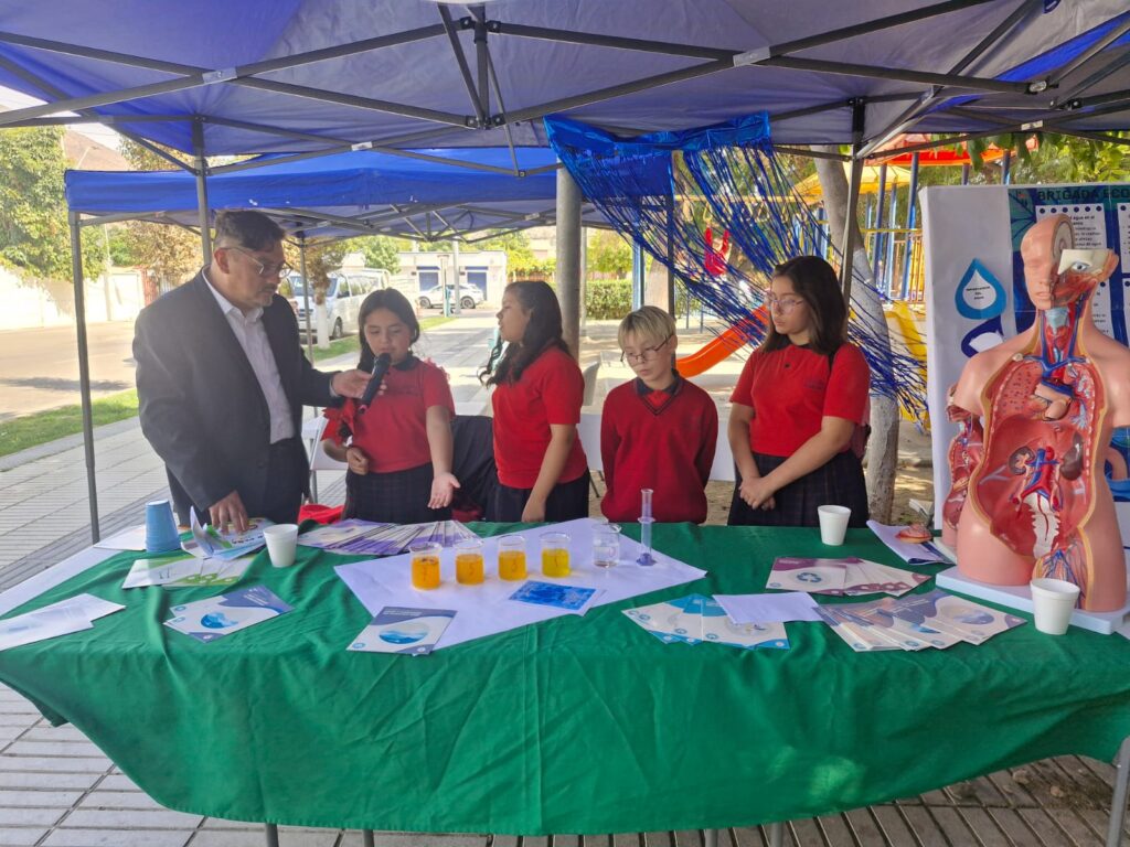 Hoy jueves 10 de abril los estudiantes de 3° y 5° básico a cargo de las profesoras Gabriela Tapia y Claudia Guerra exponen sus trabajos sobre cuidado del agua y la salud, en feria medioambiental organizada por la municipalidad de Nogales desarrollada en la plaza comunal.