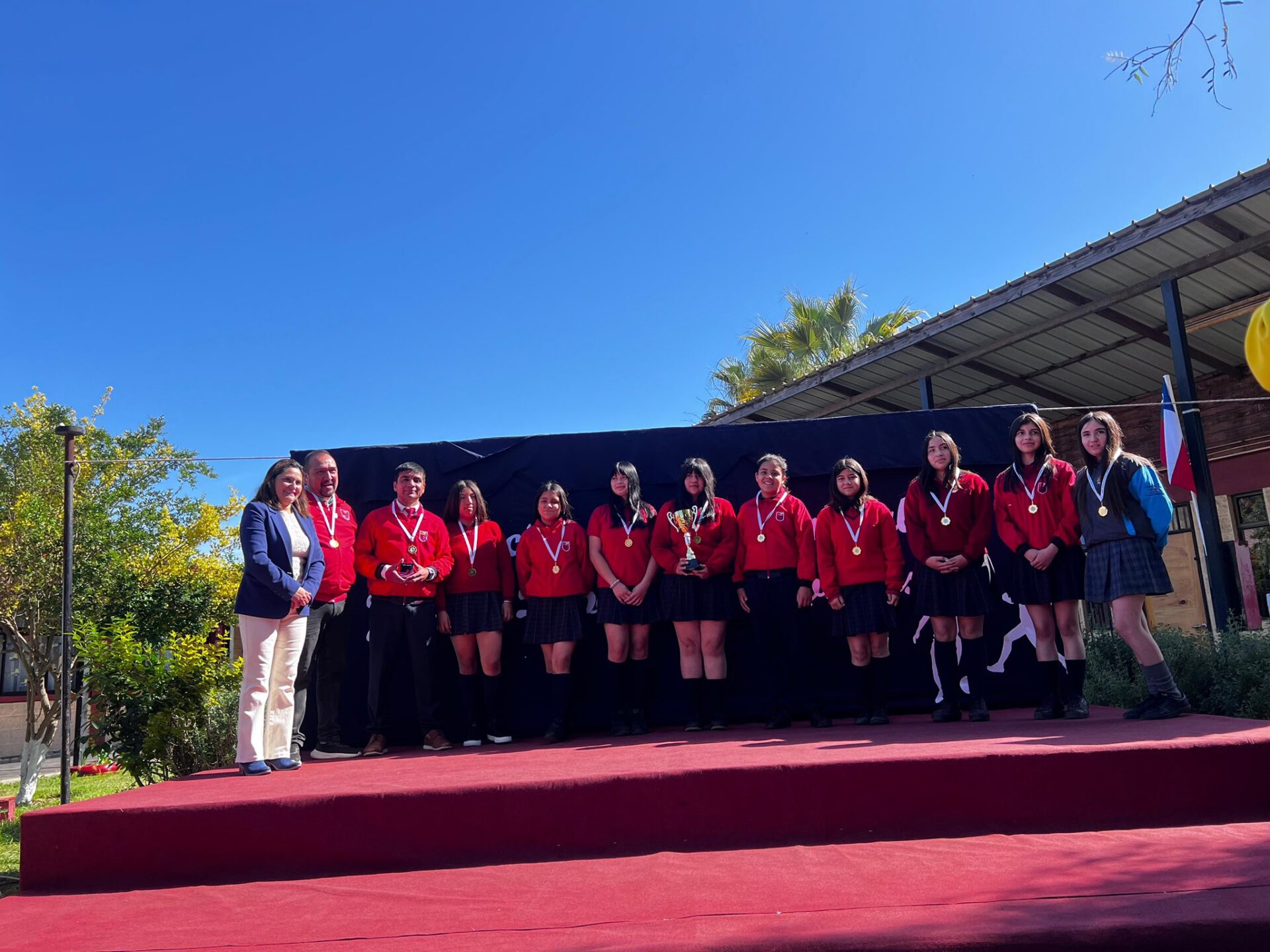El evento contó con la presencia de la alcaldesa Leslie Pacheco, directores de cuatro colegios, nuestra jefa DAEM Karen Daniela Sepúlveda y el equipo DAEM, quienes acompañaron y celebraron junto a la comunidad educativa este importante logro deportivo.